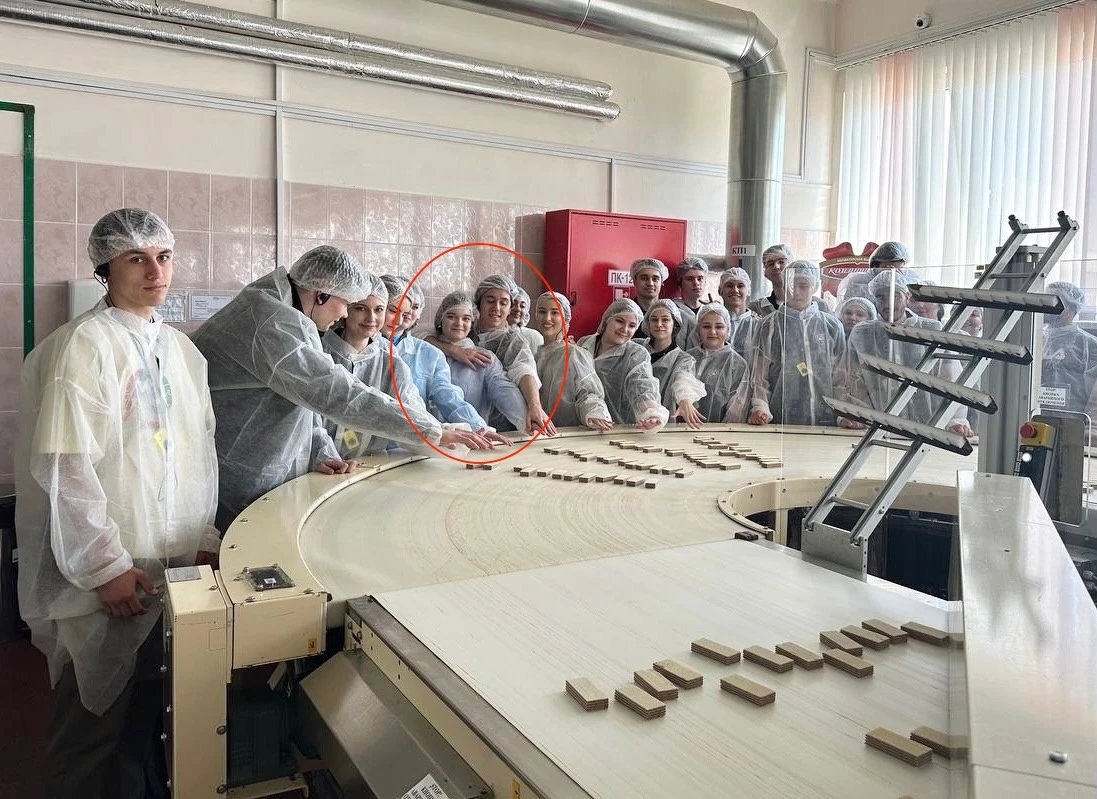 На следующий день молодые люди продолжили обниматься во время экскурсии в цеху завода «Коммунарка».