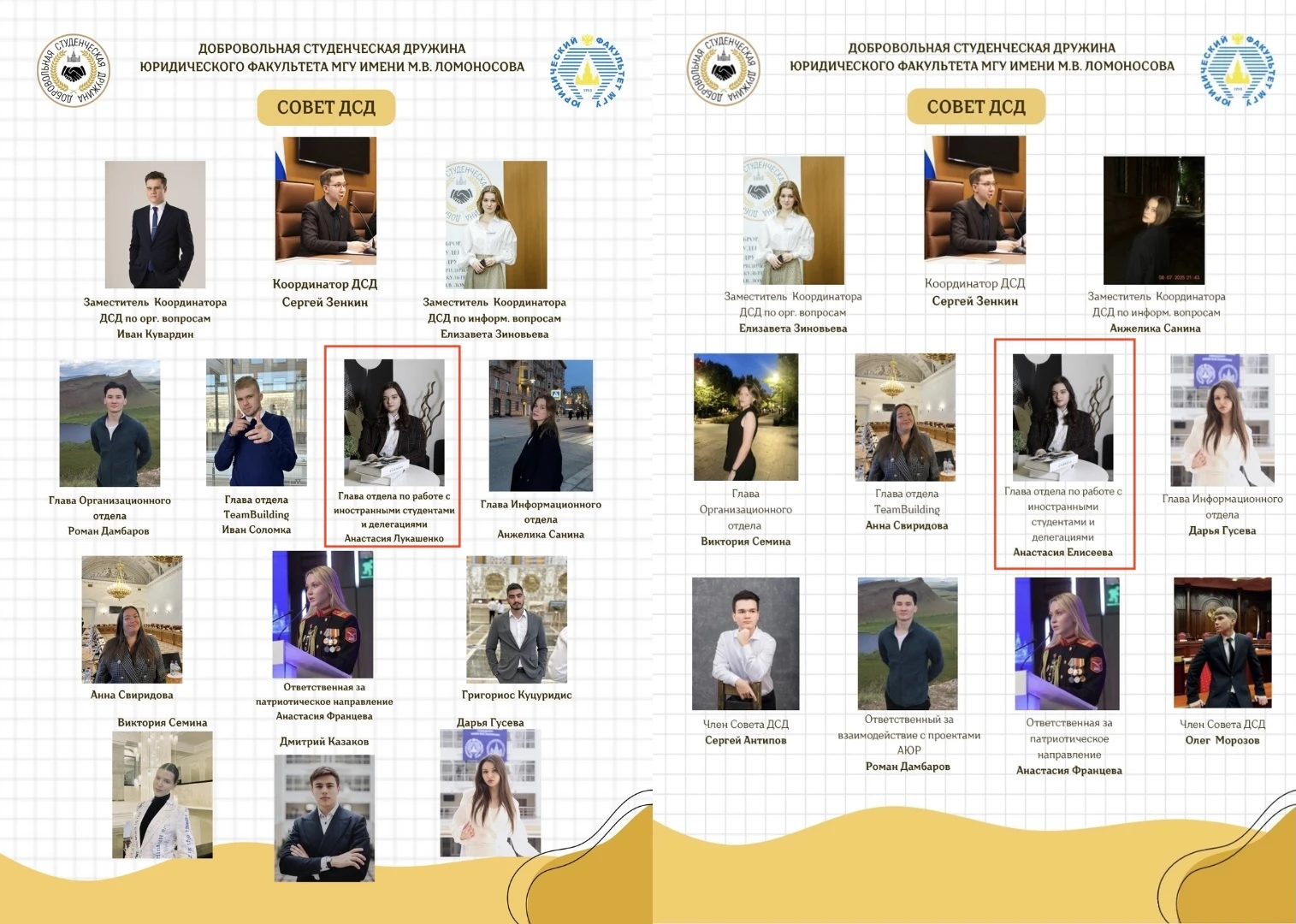 Состав ДСД: апрель 2025-го – Анастасия Лукашенко (слева), сентябрь 2025-го – Анастасия Елисеева (справа). Источник: профиль ДСД во «ВКонтакте»